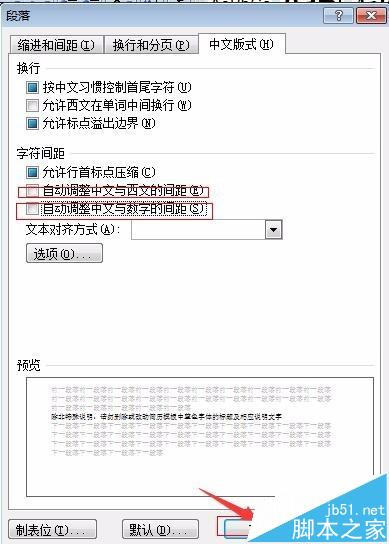 2、在段落窗口中,选择【中文版式】选项卡,取消选择【自动调整中文与数字间距】和【自动调整中文与西文的间距】选项卡。