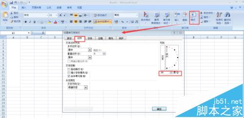 3、打开“设置单元格格式”对话框,单击"对齐”选项卡,将“文本”方向设置为90度,单击确定。