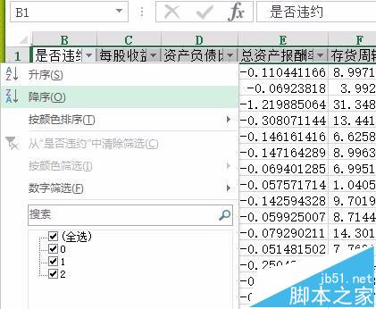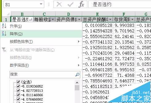 4、图示样例中,我们对B列和C列同时进行筛选。我们点击图示B列的倒三角,在弹出的下拉框中点击降序。