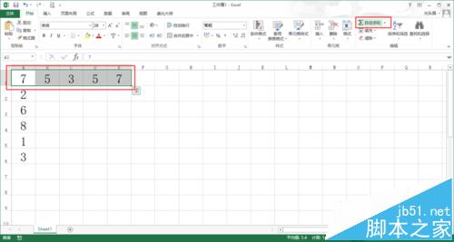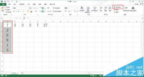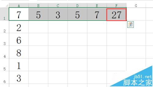 2、第一种方法就是使用【开始】菜单里的【自动求和】快捷键功能,比如选定要求和的第一行,然后点击【自动求和】快捷键,那么就会在该行的下一列显示求和的结果,如下图所示。