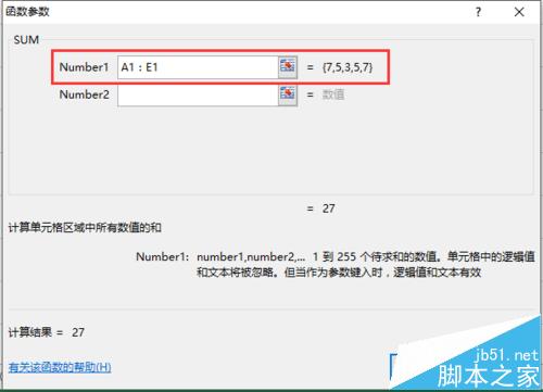 3、选择SUM命令后,点击确定按钮进入函数参数界面,在该界面里输入要求和的单元格即可,如果要求和一行,只需要输入首行和末行,中间用:表示,然后点击确定按钮即可完成自动求和。