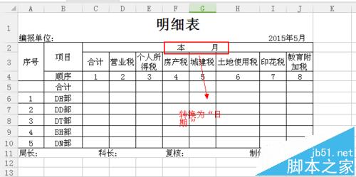 2、对表格中出现的所有信息进行判定,排除与得到数据结果无关的,例如:“序号”“顺序“”合计“”局长“”2015年5月“等。如下图