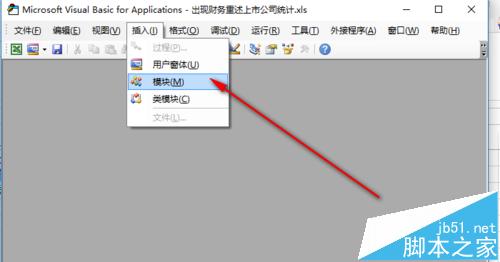 1)在菜单栏里,选择“插入”-“模块”