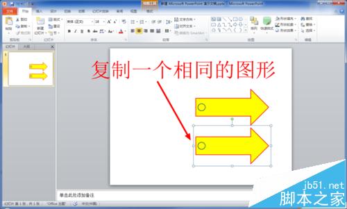 4、将设置好样式的形状复制一份,这样幻灯片中就有两个一样的形状。