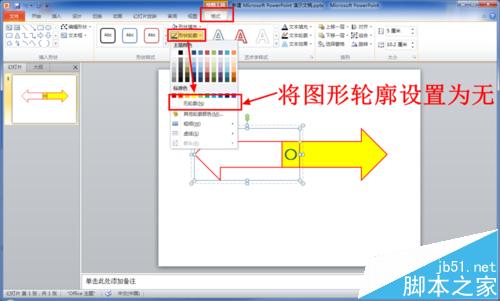8、将复制的图形的轮廓设置为“无”(选中后通过“格式”选项卡中的“形状轮廓”选项设置)。