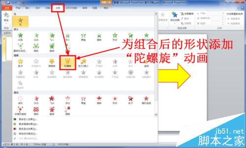 11、给组合后的图形添加“陀螺旋动画”。