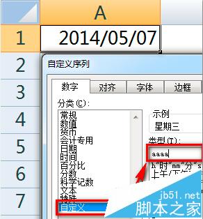 如果用公式=TEXT(A1,"aaaa"),一样可以达到更改格式显示的目的。