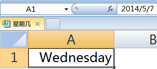 首先,看一下原始数据。A1单元格中为Excel可识别的日期格式,需要将这个日期转换成星期的显示方式。