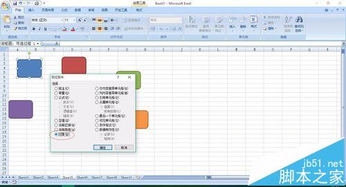 3、在弹出的“定位条件”对话框中选择“对象”,然后确定