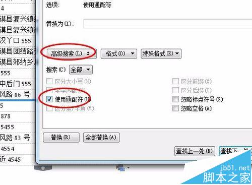 3、再在高级搜索里面点击使用通配符。就是在前面的画对勾就可以的