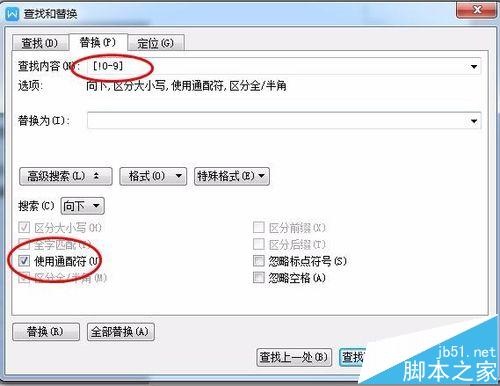 6、同样的我们也是在word文档进行替换,这个时候我们就在数值0的前面加一个!就可以了:[!0-9]