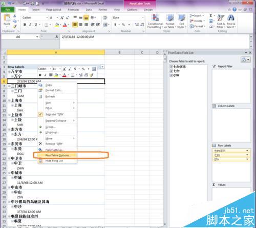 1、做好数据透视后,点击任何一个单元格,右键,找到数据透视表选项。
