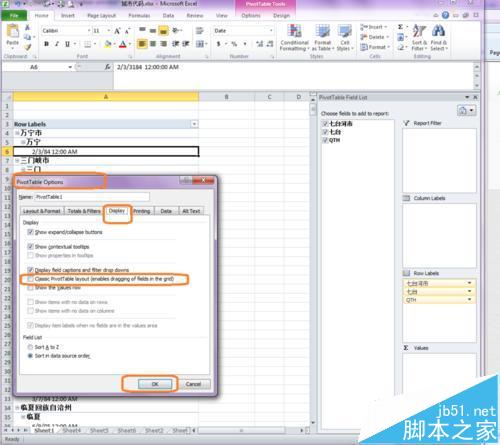 2、打开数据透视选项卡,单击“显示”---勾选“经典数据透视表布局(启用网格中的字段拖放)”---确定