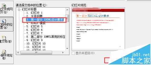 5、我们的目录中第一个就是对应第一个标题的,所以我们选择对应标题的幻灯片,可以看到幻灯片的缩略图,然后点击“确定”