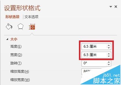 1、新建一个PPT文档,插入一个圆,宽高为6.5厘米。