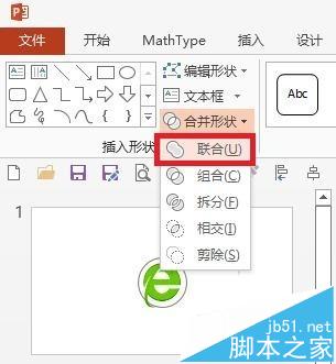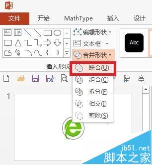 8、选中两个图形,依次点击格式,插入形状,合并形状,联合。