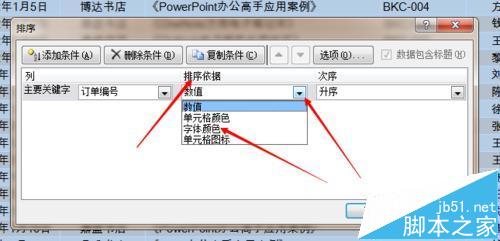 4、排序依据下选择“字体颜色”。