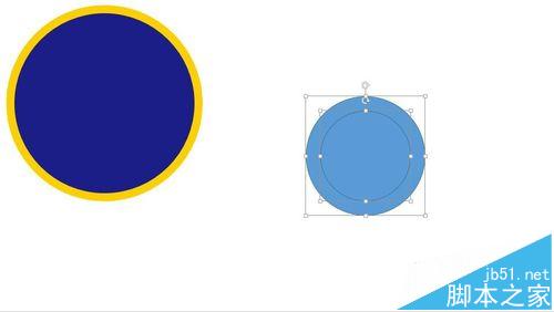 2、接着再插入一个圆,宽高为11厘米,颜色RGB(27,30,135),无线条。然后与第一个大圆居中对齐。