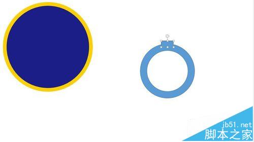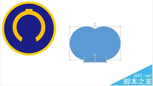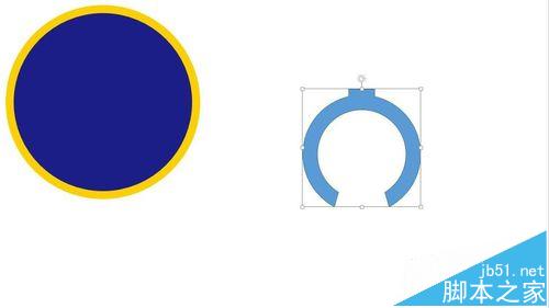 15、然后插入两个圆,宽高均为:7.4厘米。如图进行联合。