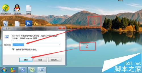 2、在输入框中输入services.msc,点击确定进入。