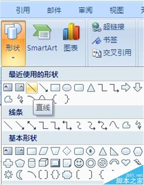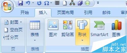 1、打开word2007,点击“插入“--”插图“--”形状“
