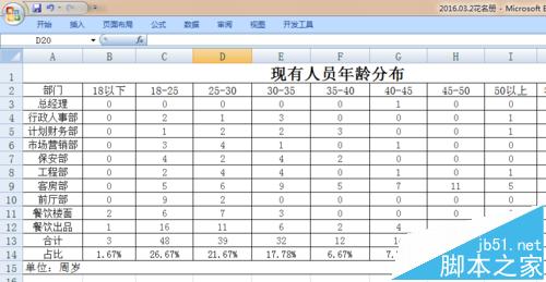 花名册或类似EXCEL应用,依靠公式自动生成相关信息,可以尽量避免手工输入和统计错误,同时可提高工作效率,实时掌握信息。其中,根据花名册,实时生成和掌握各部门在职人员的年龄分布。