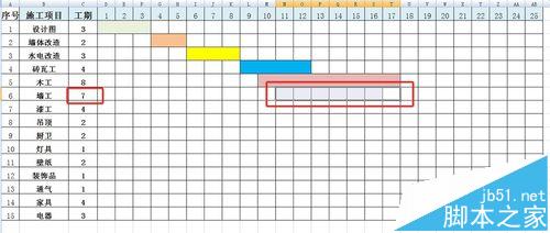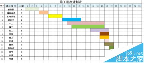 3、这样我们就得到这样一个相对比较直观的进度计划表了,但是,这种表只能适用于刚开始规划的时候做计划表用,后面跟进进度的时候就不实用了。