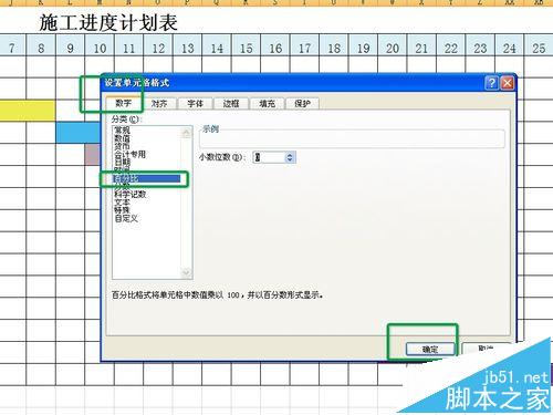 5、接下来,在所有进度框内根据工作量的进度,输入进展程度的数值;数值输入后,框内就出现对应的进度比例条,颜色和样式可以随便调整,这样就得到比较实用的工程进度表了。