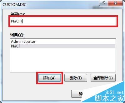 7、添加后再词典列表中看到该词,如果不需要了,还可以点击删除,最后确定即可。