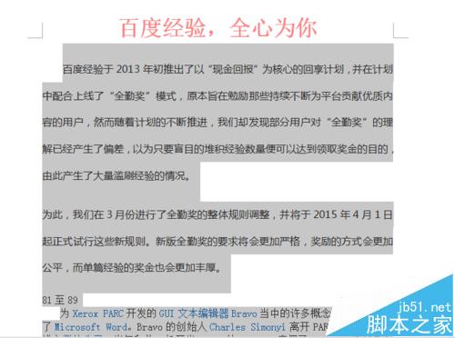1、打开word文档,找到要复制的内容,重新建立一个word文件,首先要先选中文件内容,本人全选内容,用ctrl+A快捷键。