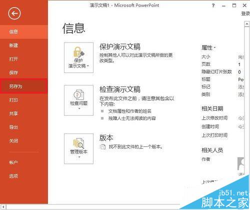 2、在侧边栏点击“保存”或“另存为”。如果是刚做的没有保存的可以点击保存,而之前做的已经保存过的点击另存为。