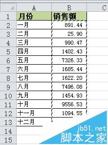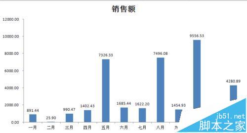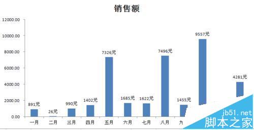 如下图,是一个简单的月销售额报表,我们以柱形图为例,先以它做为数据源生成一个柱形图表。