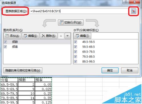 2、如图所示,图表数据区域——选择整个图表——点击确定。