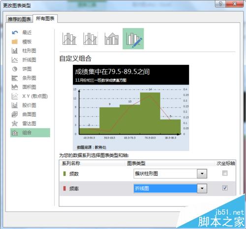 3、右击(频率的柱子)——设置数据系列格式——次坐标轴。