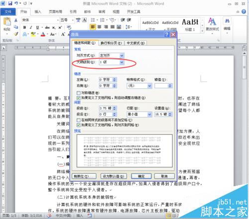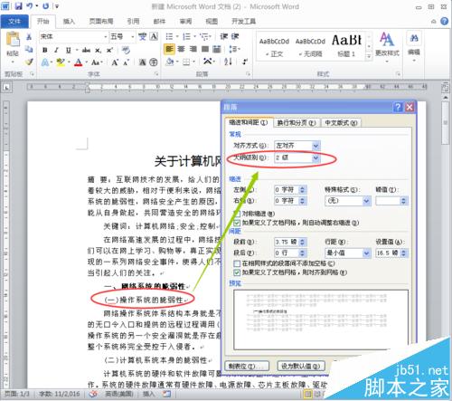 3、鼠标右键“段落”,做如图红框内的设置,具体大纲级别已你实际需求为准