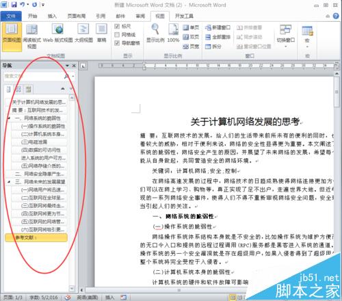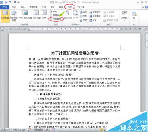 6、依次把文档里的标题做相应设置后,单击“视图”,勾选“导航窗格”前的复选框