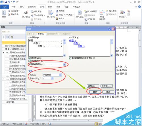 3、在目录选项卡页面做好相应的设置,然后点击“确定”