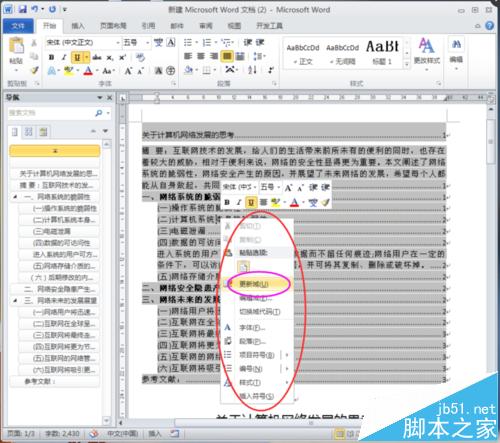 4、这里,我们要把刚刚的第六小点插入目录里,首先,按前面的方法,给第六小点设置大纲级别(如果不清楚大纲级别是多少,请重新阅读此份经验),选中目录,目录被选中后,目录文字的底色发生了变化,如图