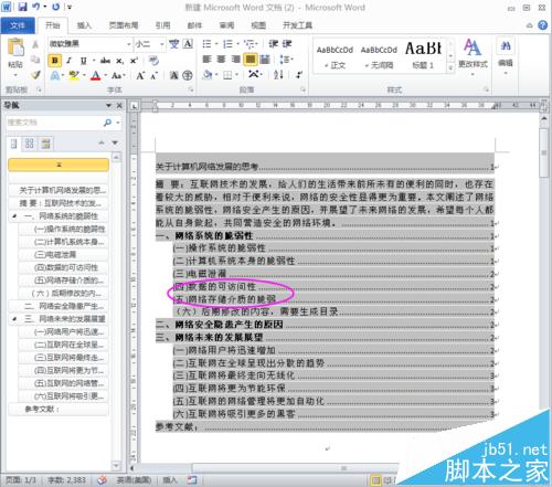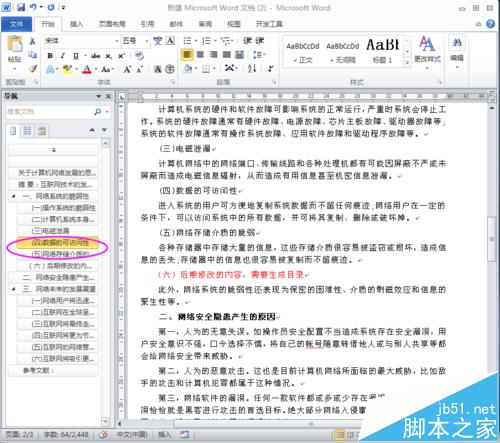 2、要处理此问题,就要知道该问题的成因,原因是第四小点的内容并没有以段落的形式存在,而是以正文的形式存在,现在,只要用格式刷把其他正常的段落的格式复制到第四小点的内容里,就可以看到“导航”里面已经显示正常了。