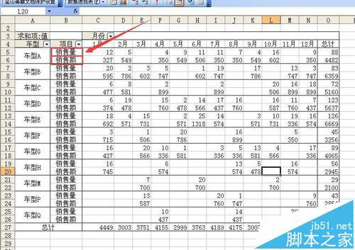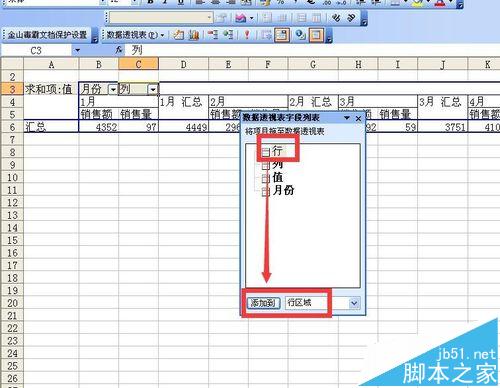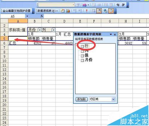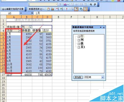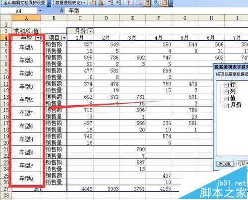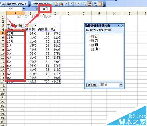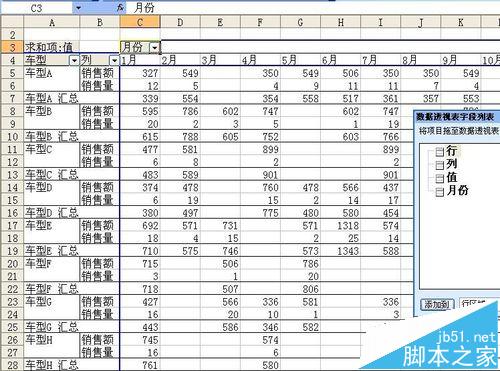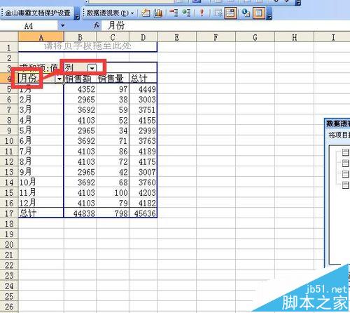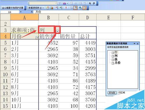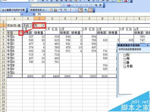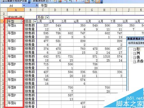 2、将月份从行字段转移到列字段时候注意与原来列字段的左右位置。