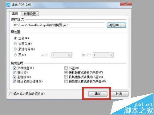 2、出现“输出PDF文件”其他不用选,直接按“确定”,如图所示