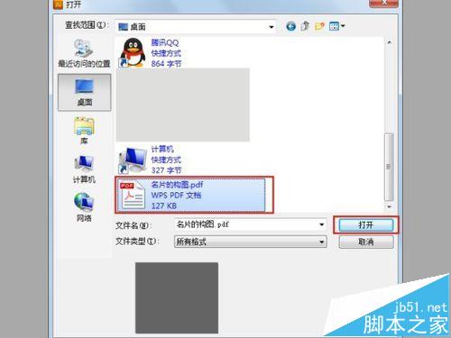 5、选择刚才在Word文档保存的PDF格式文件,如图所示,在选择“打开”,如图所示