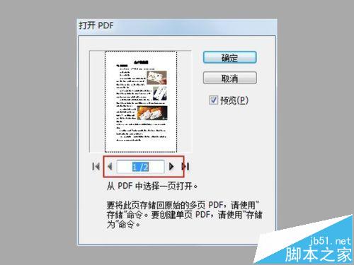 6、出现“打开PDF”对话框,红色框住的区域是Word文档的页数,1就是第1页,2就是第2页,然后一页一页打开在一页一页的保存,如图所示