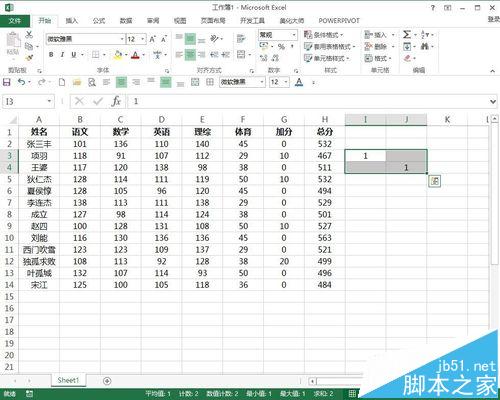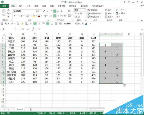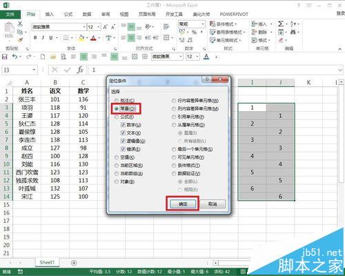 5、确定后,刚录入的数字区域被定位选中了,如下图所示。