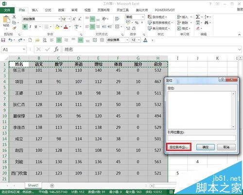 10、再选中所有记录行,按下键盘上方的F5功能键,弹出定位对话框。点击左下角的“定位条件”。