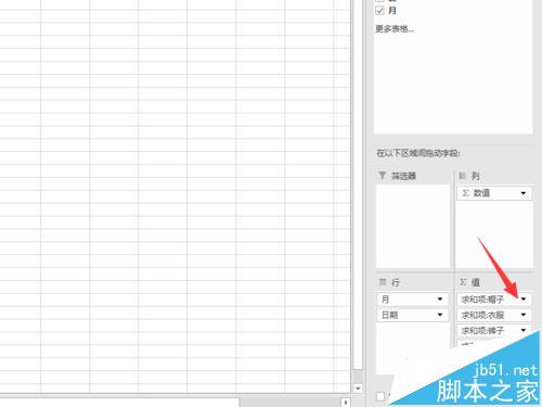 8、如果我们不是要求和,我们需要点击下方的选项中的倒三角号,再在弹出来的框架中选择值字段设置。