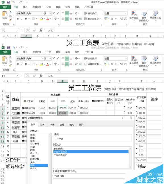 2、在表格中,每个人的工资都是以数字格式存在的数值,也就是阿拉伯数字形式。
