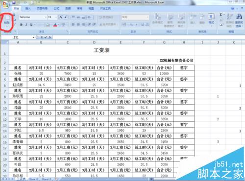 对于习惯使用Excel 2003的办公人员来说,换了一家公司用的居然是Excel 2007,简直是折磨,很多经常用的按钮找不到在哪里,需要做的表格也就难以完成,让我们很头大。今天我就教大家如何在Excel 2007中制作工资条!!!