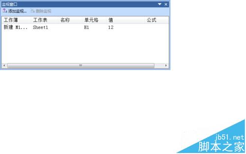 7、选择“添加”,这时“监视窗口”对话框下就多出了一行信息,就是你监视的单元格