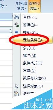 3、在弹出的菜单选择“定位条件”